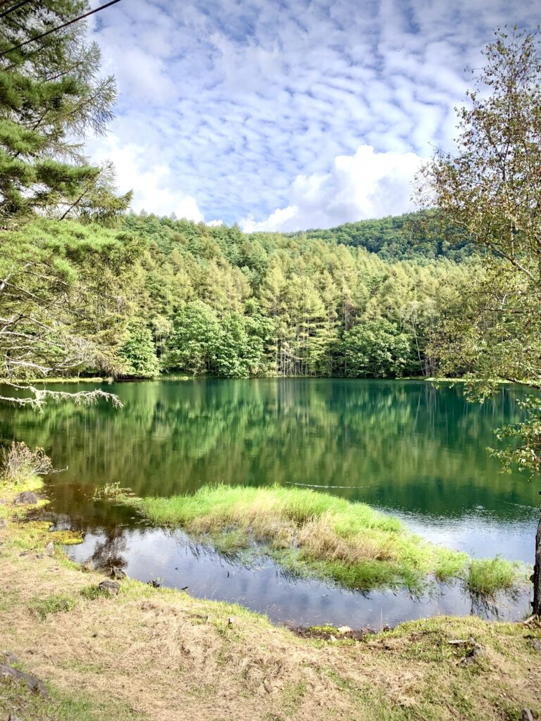 先月、長野県茅野市にある【御射鹿池(みしゃかいけ)】へ出かけてきました。 長く続いた猛暑が落ち着いて、少し涼しくなってきた晴れた休日に向かいました。 中央高速道路の南諏訪インターを降りて、長い曲がりくねった山道を登りきると、右手に御射鹿池が見えました。 駐車場に車を停めて少し歩くと、左手にその池が柵越しに見ることができました。 晴天で風のない日なので、池面に周囲の森の緑色や空の青色が反射して、綺麗に映し出されて透明感がありました。 その自然の作り出す神秘的な美しい景色に、感動しました。